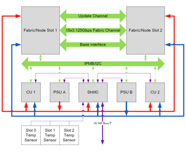 支持10/100 Base/T、RS232、IPMB等多种通信方式对机箱进行管理